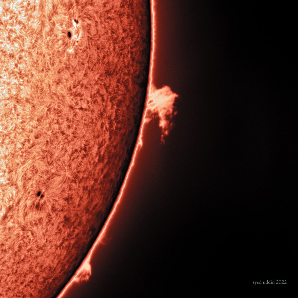 সূর্যের এই ছবিগুলি এবং এর কার্যকলাপ (সূর্যের স্পট, ফ্যাকুলা, এবং প্রান্তের আলোক স্ফোরন) আজ আমার বাড়ির উঠোন থেকে ধারণ করা হয়েছিল। সূর্যের ক্রিয়াকলাপ একবার তার শীর্ষে গেলে দশ থেকে বারো বছর স্থায়ী হয়। আশা করা হচ্ছে যে পরবর্তী শিখরটি 2025 সালে হবে। আশা করি,আমি মাসে অন্তত একবার ইমেজ করতে থাকব এবং আপনাদের সবার সাথে সৌন্দর্য শেয়ার করব।