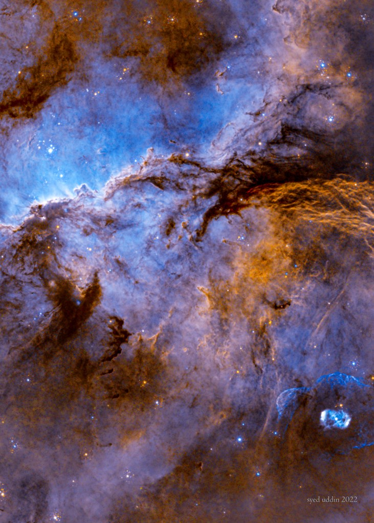 এই নিহারিকাটি আমাদের থেকে প্রায় ৪ হাজার আলোকবর্ষ দূরে যেখানে নতুন তারা জন্ম নিচ্ছে। এর ব্যাস প্রায় ৬০০ আলোকবর্ষ ! ১ আলোকবর্ষ = ৯ ট্রিলিওন কিলোমিটার.