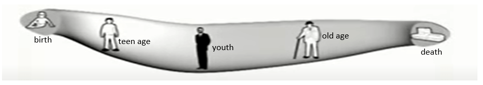 মানুষের জীবন আসলে নিচের এই চতুর্মাত্রিক ছবির মত – পুরো পথটাই সিনেমার স্নাপশটের মতো সাজানো, পূর্বনির্ধারিত – মানুষের কাজ শুধু নিজের কাজকর্ম দেখে যাওয়া।